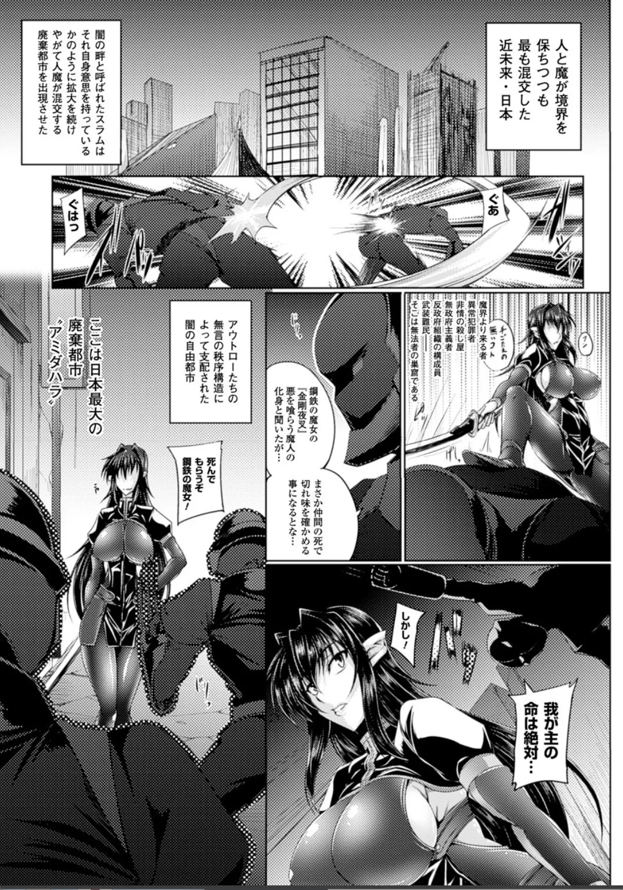 内容:人と魔が共存する世界。突如出現した廃棄された都市アミダハラ。アウトローたちの無言の秩序構造によって支配された闇の自由都市。そこに鋼鉄の魔女、アンネローゼ・ヴァジュラはいた。完全無欠のアンネローゼだったが、この日、一瞬の隙を突かれて捕らわれの身となってしまう。乳首を刺激されてマンコをおっぴろげられるアンネローゼ。鋼鉄の魔女が快楽によがり屈辱的に中出しされる!